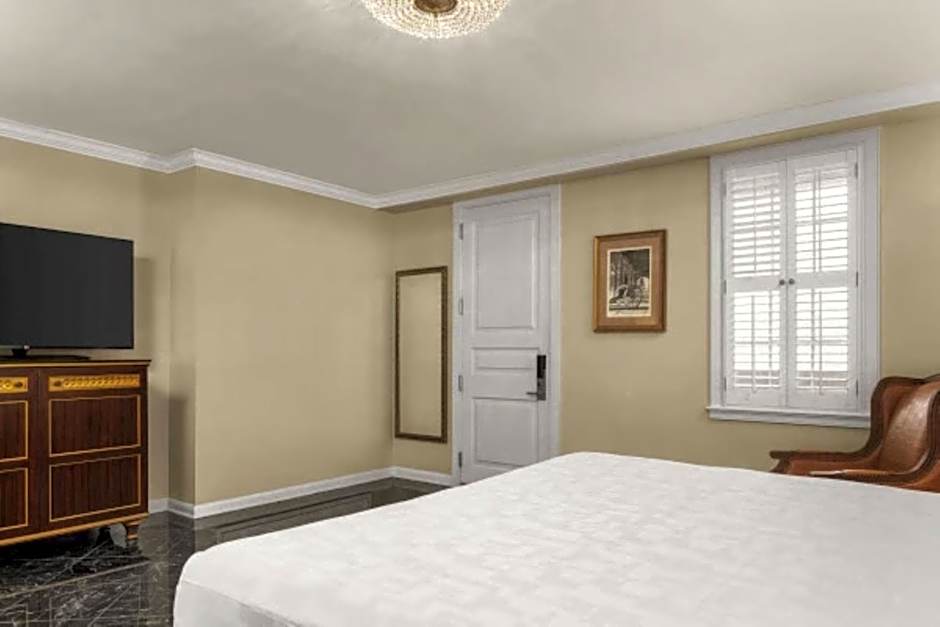 This spacious room with French Quarter or courtyard views features pillow-top mattresses and a private bathroom with walk-in shower. Complimentary WiFi, local calls and bottled water are included. Guests can also enjoy the in-room coffee machine and safety deposit box.